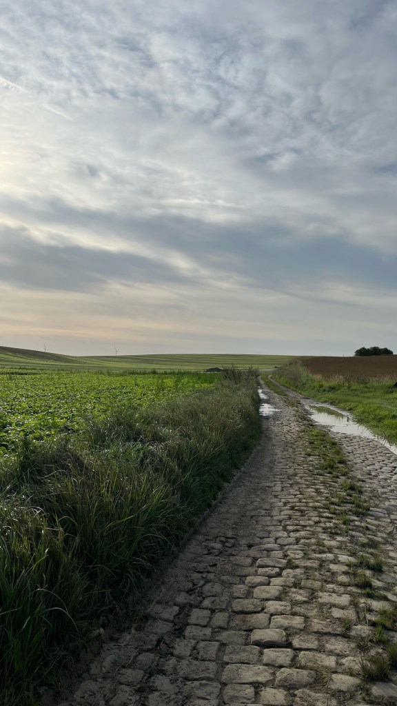 After a brief uphill on my way out of Seraucourt, I was back in flat, flat, farmland on backroads paved with stones (almost like a Roman road) instead of asphalt. Yet another reminder of Rome — I really miss it, and I miss my life there. It’s only been 2 weeks or so since I left, but it feels like such a long time ago.