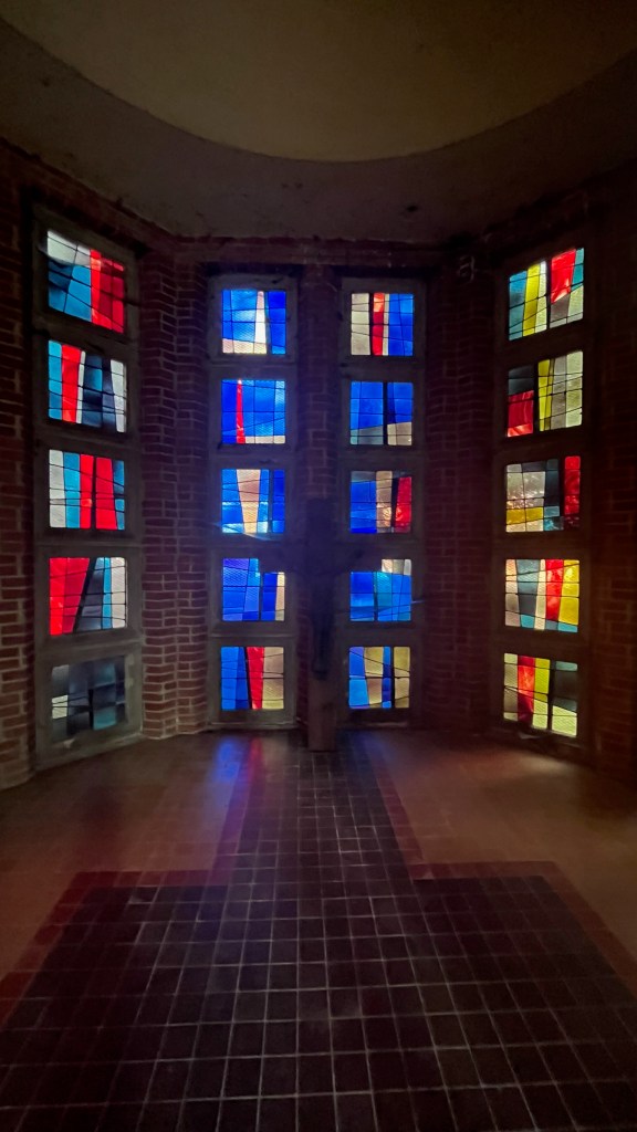 After lunch, I popped back into the main church building — the church has been rebuilt twice in the last century or so, as it was destroyed during both World Wars. The caretaker was in the church, playing the piano. I sat for awhile looking at the modern stained glass before heading back to the parish quarters. I’ve been sitting for over an hour now in the offices, writing. I will make myself dinner and head to bed — not much else to do! Despite my best efforts, I have a bit of the heebie-jeebies about being here alone. To be clear, I’m very grateful for the place to stay — just wishing I had a fellow pilgrim here with me.