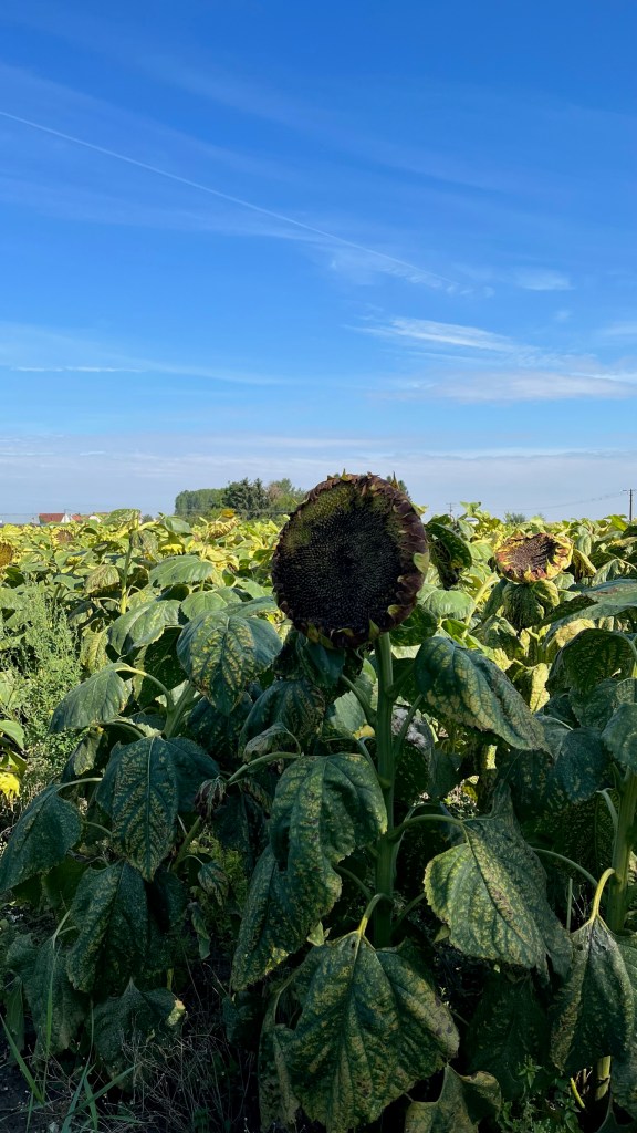 On the way out of town was really the only part of the day that would make me hesitate before recommending this route. Walking on a small farm road past fields of very weary-looking, massive sunflowers, I suddenly heard the sound of gunshots. I froze. My first thought was that it might be hunters, though I don’t think August is the season. I wasn’t sure how to proceed — I was still on the road, and quite visible. Should I put on my hi-vis? I then thought to look again at the map and my suspicion was confirmed: the Crepy gun club firing range was just up ahead. I guess this was better (at least more controlled) than hunters, but the continued sound of gunshots made me nervous. Maps.Me had me walking on a farm road just past the gun club, and though I’m sure France has reasonable regulations for these things, I couldn’t shake the image of someone missing their target and hitting me with a stray bullet. I decided the sensible thing to do was ask the gun club people if the road was safe. After a very broken conversation alternating between French and English, I showed the owner of the gun club the route I had planned. “C’est possible?” He scrutinized the map before nodding vigorously. In English (which he spoke), I confirmed, “So it’s safe — even with the guns?” He replied in the affirmative, so I set off again. That said, I still didn’t feel great about the scenario, and took off at a pace that was almost a jog until I had the gun club far behind me, with a stand of trees in between us. In reality, I only heard one gunshot on my way out, and as I speedwalked by I saw how the ranges were set up so that shooters weren’t facing the road, so it would have been fine either way.