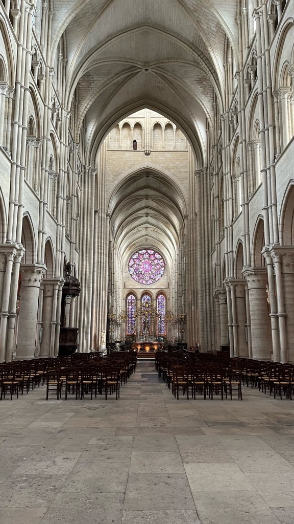 The Laon Cathedral is something to behold: a 12th / 13th century textbook Gothic cathedral that was a peer of the Notre-Dame in Paris, and inspired the famous Cathedral in Reims. Inside is stunning, such a wide open, airy space, with beautiful rose windows at each end of the nave. I walked the perimeter admiring the church and looking for somewhere to stamp my credential (unsuccessfully). Glad to have visited, but bummed to not receive a stamp from the church that had been my North Star all day, I headed to the tourist office and then to check into my Airbnb.