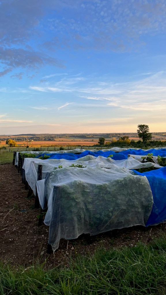 It was a beautiful morning, cool and clear. I watched the sun rise over the fields as church bells rang out over the valley from Gy’s church. I passed only a few cars, some vines wrapped up to protect from hail (until the phylloxera crisis of the 1860s, this region had been well known for wine), and some cows. I called Nathan to say good morning /goodnight and after 45 minutes or so entered Busey-le-Gy, a charming village with a lovely church sitting high on a hill above town.