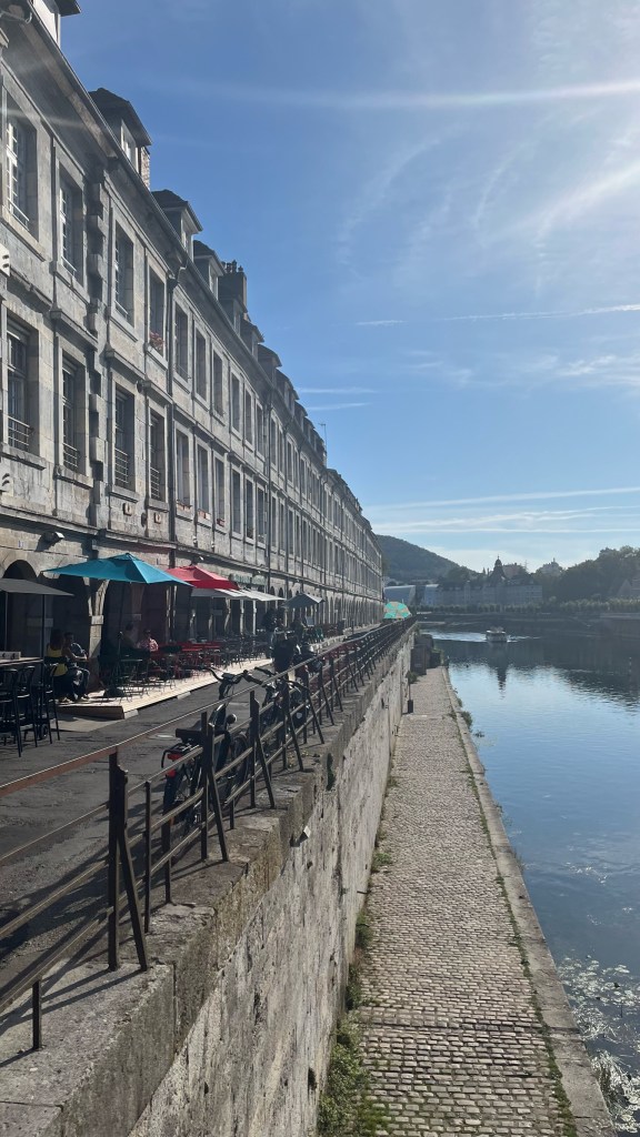 I met up with Patrick and his daughter, who came to visit him from Kent, for a drink under the shade of a tree in one of Besancon’s plazas. He had done much of the tourist loop already and had helpful advice for my day tomorrow. It was great to catch up on the path so far and really lovely to meet his daughter, who is very fun and interesting. After a drink the three of us planned to get dinner. We walked to a restaurant that seemed highly rated, and were turned away — complet! The next 2 restaurants we tried were also fully booked. I was shocked — even in Reims it was possible to get a table on the spot on a weekend! We eventually walked by a restaurant that had space, and my dinner was a steak tartare, a glass of beaujolais, and — naturally — a chocolate cake for dessert.