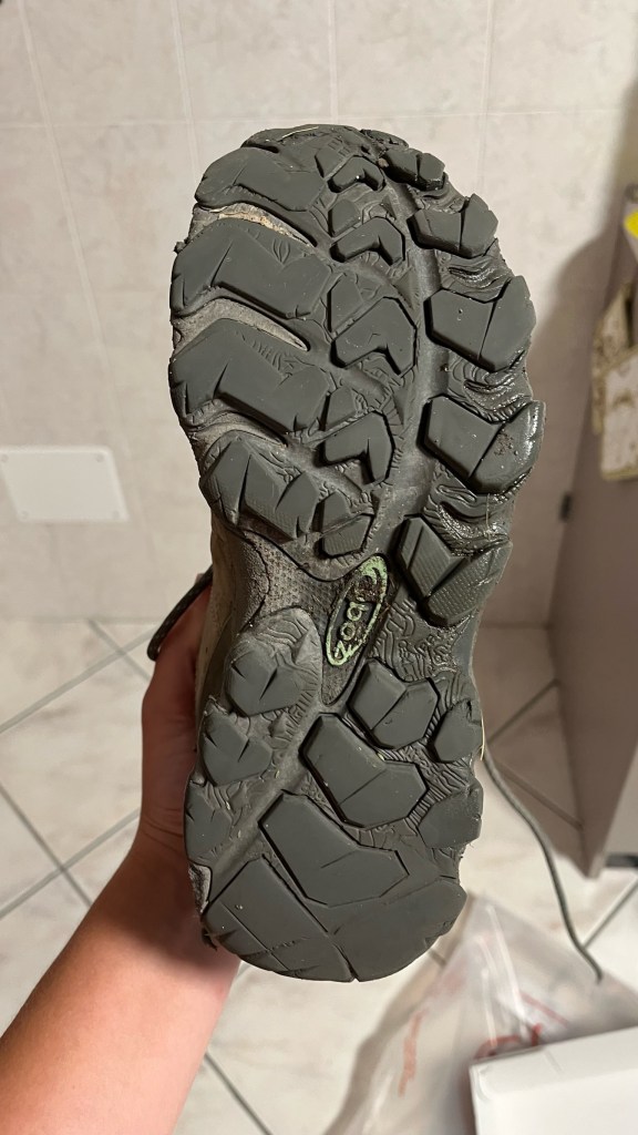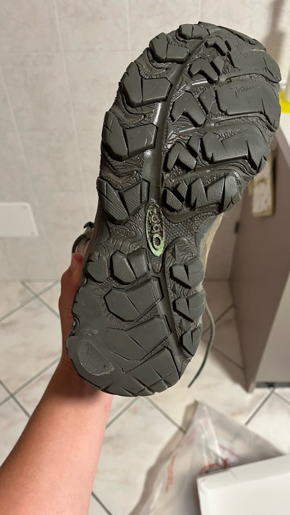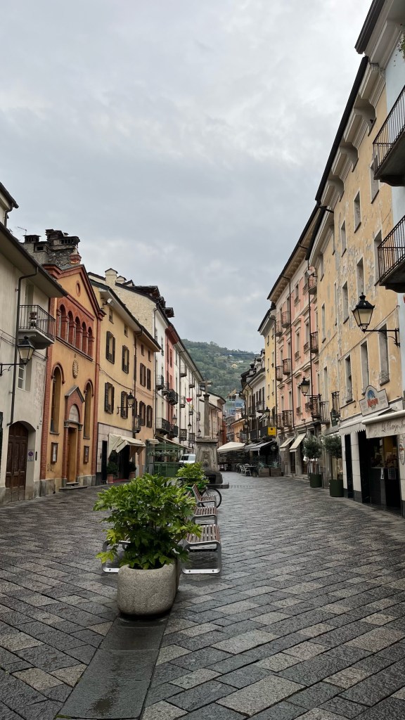 Then it was time for my main task of the day: purchasing replacements for my boots, whose soles are looking worse for wear. I figured Aosta would be a good place for this as it is very much a mountain town, and there seemed to be a bunch of outdoor shops. However, the first one I visited had nothing in my size. The second one I spent about 30 minutes trying on various trail runners, but remained unconvinced of the options there. I know trail runners are all the rage for things like the Camino, but after 1000 kilometers in proper hiking boots, something so lightweight and unprotective makes me feel a bit vulnerable. So, I went to a third store, where a grumpy and not super helpful sales associate handed me a few options to try that were a bit more substantial. Through some trial and error with limited guidance, I managed to get what I think should be the right size — for these things you want to size up at least one or two sizes since your feet swell so much when walking. He wanted me to take a lighter weight shoe that, according to him, was more modern technology. But again it felt a little too light and my feet were sliding around, so I ultimately ended up with a pair of essentially low-cut hiking shoes, with pretty substantial soles and more padding around the foot. We’ll see how it goes.