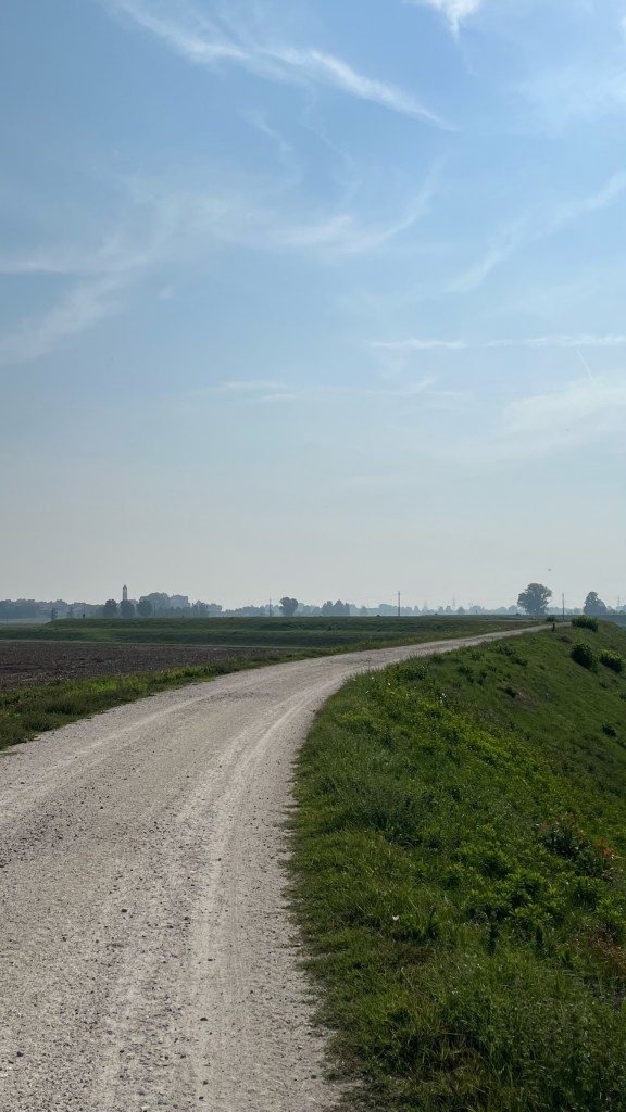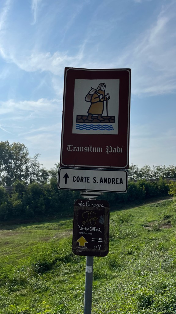 Finally, I arrived in the hamlet of Corte Sant’Andrea. I say hamlet, but maybe even that is a strong word — there are 10 inhabitants. But historically, this place was much more significant. For centuries it (apparently) was the only place in the area suitable for crossing the Po. So, certainly, it was where Sigeric crossed in 990, and where thousands of other medieval pilgrims also crossed — and even going back to Roman times was an important location.