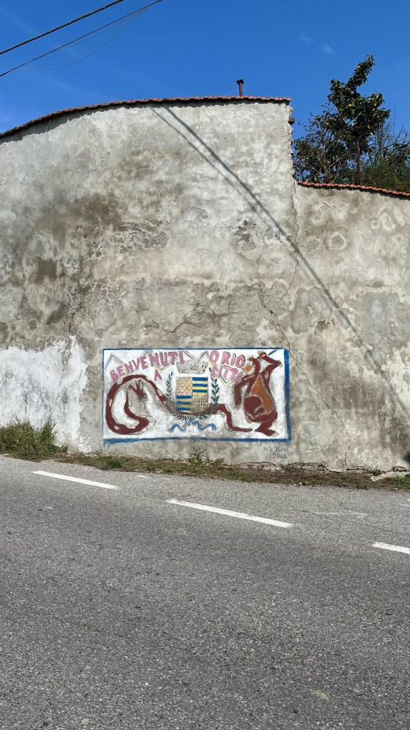 Anyway, the album got me into Chignolo Po, a small village with a huge castle that I could see on the horizon as I approached. I walked around to what I thought was the front — the whole thing was enclosed by a massive wall — but unfortunately it was locked. I did manage to get a photo through the fence. From here it was a straight shot on roads to Lambrina, where I was looking for a bathroom and a place to sit and rest, as my blistered heel was really starting to hurt. I was directed to a bar (not on Google maps, so glad I asked for directions), where I had a clementine soda. I ended up chatting with the proprietor for awhile, as she came out from behind the bar to ask me about the experience of walking the Via alone. As I packed up to go, she wrapped up a piece of her berry tart and handed it to me — another gift for the road.