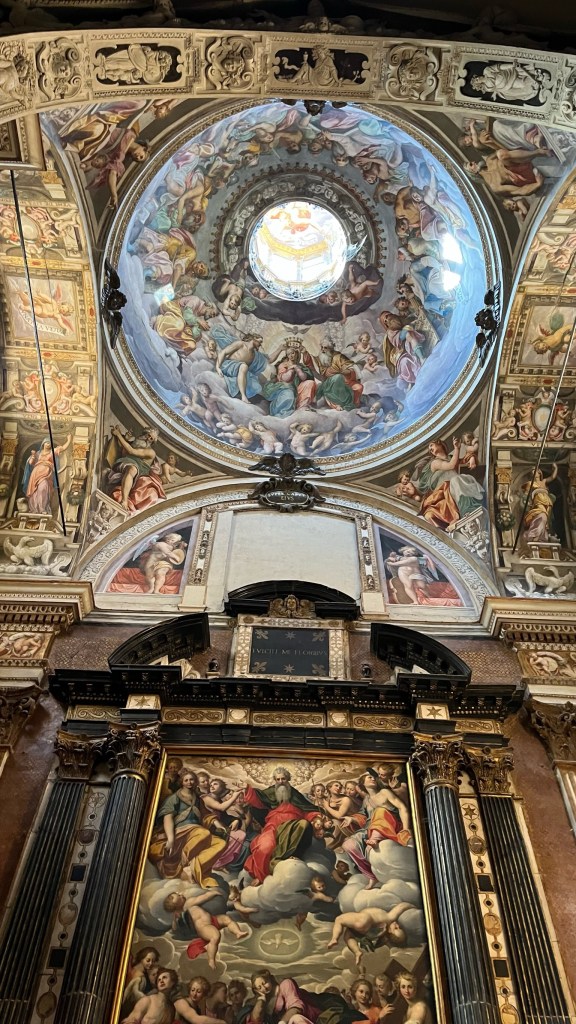 This done, I headed back to the Airbnb to rest for a bit and put in a second load of laundry, waiting for the tourist office to open at 10am. Once it did, I headed over to get my stamp (and purchase another patch for my pack), and then visited the Basilica of San Francesco which was nearby, and had fantastic frescoes on the ceiling of one of its chapels.