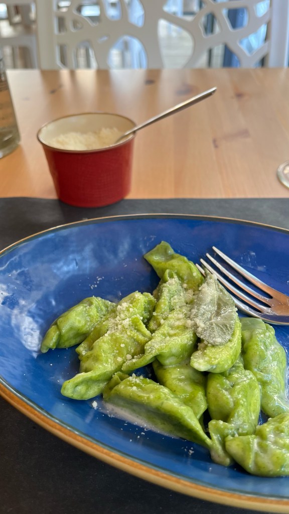 After the duomo I headed to lunch at a trattoria a block from my airbnb. The “worker’s lunch” prices were good — my fixed menu was a glass of wine (a Lambrusco I didn’t finish, given I was still not feeling fantastic), a plate of delicious tortelli d’ortiche cooked in a butter and sage sauce, and finished with a tiramisu.