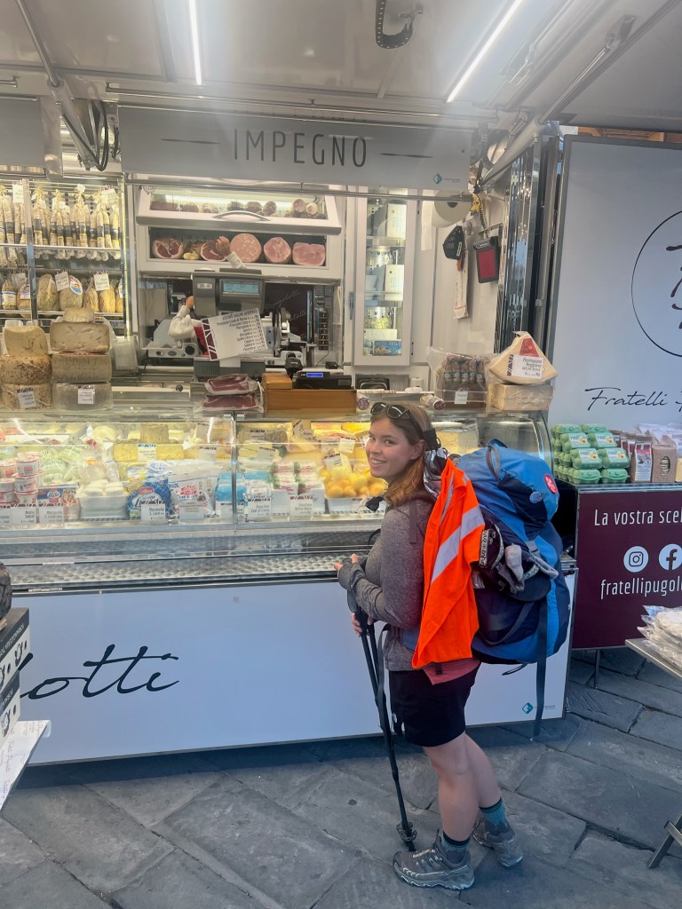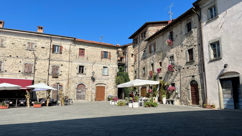 We left the convent at around 7:20. The sun was already up and the historical center of Pontremoli was still waking up. We stopped for coffees in a cafe in the main piazza and watched as vendors set up for the morning market, listening to the bells toll out 7:30am. Finishing out breakfast, our thoughts immediately turned to lunch, and we hit up one of the vendors for prosciutto, salami, pecorino, and cheese to carry with us for a picnic later. Then, we set off.