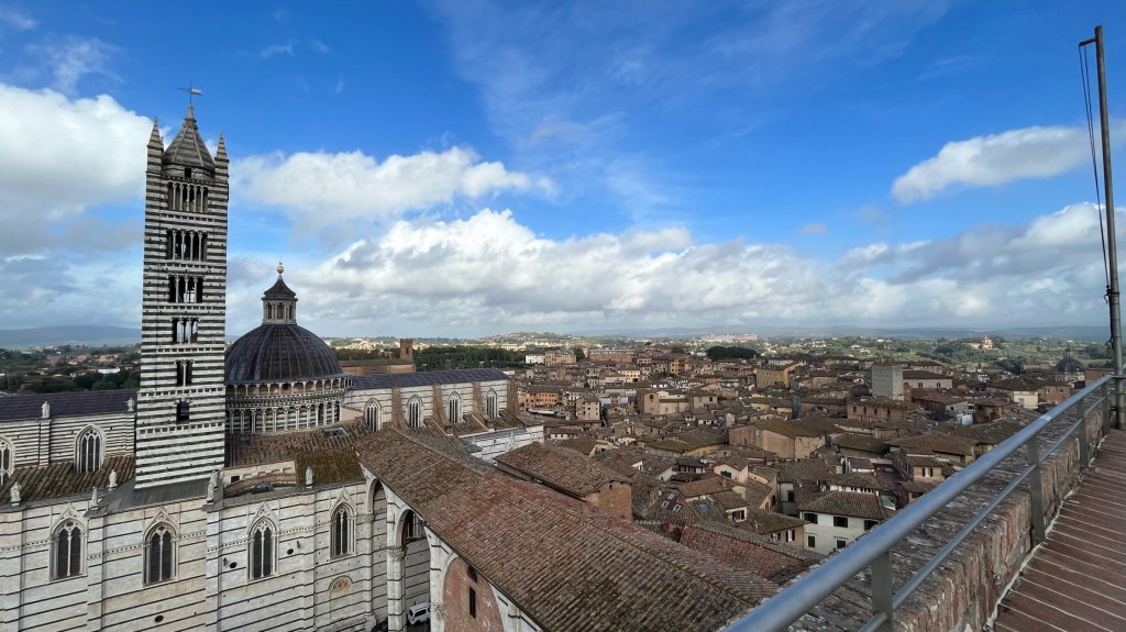 Starting to get hungry, I made quick work of the Duomo’s frescoed crypt and baptistery, which to be honest felt like they were lacking in signage and explanations. Then I headed to lunch at a small trattoria near my hotel where I treated myself to a multi-course meal: a delicious panzanella to start, then pici al ragu, and finally a tiramisu. Sluggish after a big meal, I headed back to the hotel to rest and write.