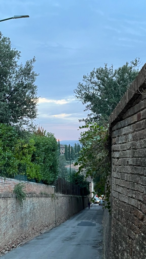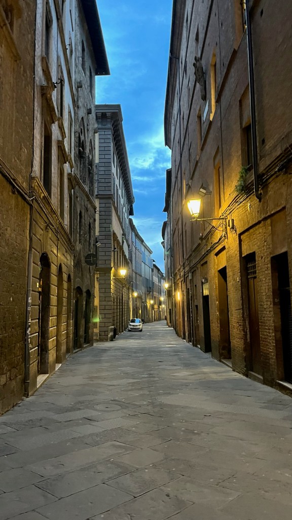 It was muggy and surprisingly warm this morning as I left my B&B. I can’t say I was in the best of moods as I had slept weirdly last night and woke up with some pain in my neck. But, as I walked through the quiet streets of Siena, almost completely devoid of people, I could feel my mood start to change.