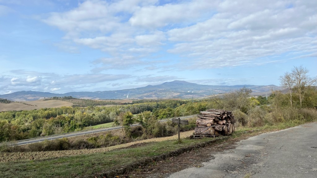 I rambled along without paying too much attention to the clock or the map. I stopped for awhile at a pilgrim rest stop with views towards Monte Amiata, which had fashioned a “selfie station” where you could shove your phone between two wooden slats to set up for a photo. I was passed by rows of hunters, most of whom seem to drive the same 80s-era 4×4 Fiat Pandas. I passed farms with pristinely organized vegetable gardens. My mind wandered once again to the future — to what lays beyond this pilgrimage. It’s sort of hard to imagine. Of course, I need to get ready for France. And I need to earn some money, too — walking for 3 months comes with its costs. And I want to see family and friends. Somehow, the two months that I thought would feel interminable I think will go before I realize.
