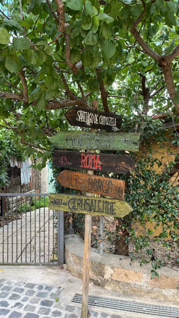 Another pilgrim, a woman I had not met before, pulled up next to me as I continued walking. Her name was Lucia and she was walking with a group of others from Vicenza. She blew a whistle at them to encourage them to hurry up, as they hung back admiring the amphitheater. They started in Viterbo, so would have a short sprint into Rome over these next few days. I was starting to pick up the pace, so bid Lucia a dopo as she stopped to wait on her friends.