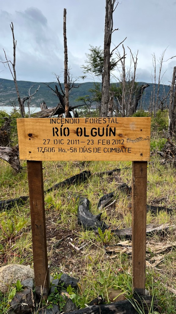 We found the mirador and admired the view. You really could admire the glacier from much closer here, and the sun had burned off many of the morning’s clouds, revealing a river of ice extending out to the Southern Patagonia ice fields. I’d skied on glaciers before in Switzerland but never seen one like this before. It was pretty incredible to see the ice stretch out for miles, as far as the eye can see. But of course, conversation again returned to its retreat and the depressing implications. The wind also picked up significantly while we were here, big gusts that threatened to blow us off our perch. My brain returned to the two suspension bridges I’d have to cross, and I decided to head back solo before the wind got worse. I bid them farewell, knowing we’d see each other at the Refugio or on our boat from Grey tomorrow, and set off.