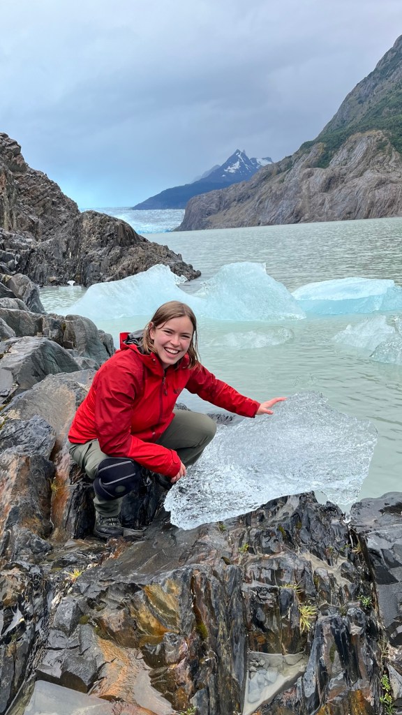 Maarten and I tried to lift a chunk of iceberg that had floated to shore up and out of the water — it was surprisingly difficult to get a hold on the ice, and in the end it was a 3 person job. Small pieces broke off, which we joked about taking home as souvenirs. While you could tell that both the glacier and the larger icebergs that broke off were the typical glacial blue, the smaller pieces were clear like normal ice — but you could see the indents of the air bubbles that create the color when there is more ice. We chilled by the water for a long time, giggling and taking photos, and tossing pieces of ice back into the water. Victor commented how ridiculous it was — three late (mid?) twenty-something’s, playing with ice at the end of the world. It was a funny image. And yet, I couldn’t help but think — if any of us have kids and they return to do this trek at our age, where will the glacier be then? Would they see the ice from here?